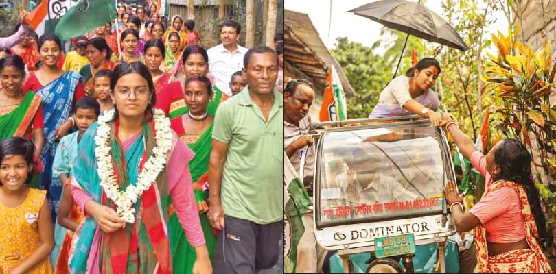 ভোট প্রচারে বেরিয়ে চাষিদের সঙ্গে ধান ঝারাইয়ের কাজে হাত লাগালেন পূর্বস্থলী দক্ষিণ বিধানসভার তৃণমূল কংগ্রেস প্রার্থী স্বপন দেবনাথ