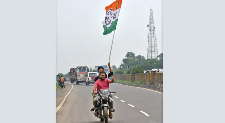 ভোট প্রচারে বেরিয়ে চাষিদের সঙ্গে ধান ঝারাইয়ের কাজে হাত লাগালেন পূর্বস্থলী দক্ষিণ বিধানসভার তৃণমূল কংগ্রেস প্রার্থী স্বপন দেবনাথ