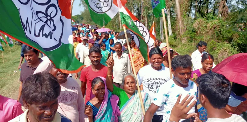 ভোট প্রচারে বেরিয়ে চাষিদের সঙ্গে ধান ঝারাইয়ের কাজে হাত লাগালেন পূর্বস্থলী দক্ষিণ বিধানসভার তৃণমূল কংগ্রেস প্রার্থী স্বপন দেবনাথ