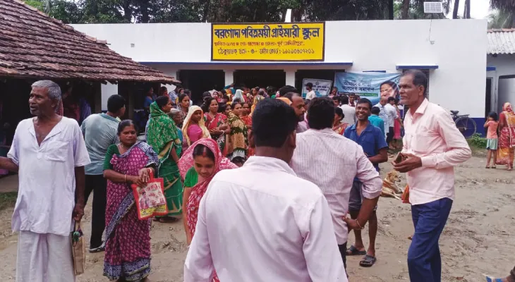 ভোট প্রচারে বেরিয়ে চাষিদের সঙ্গে ধান ঝারাইয়ের কাজে হাত লাগালেন পূর্বস্থলী দক্ষিণ বিধানসভার তৃণমূল কংগ্রেস প্রার্থী স্বপন দেবনাথ